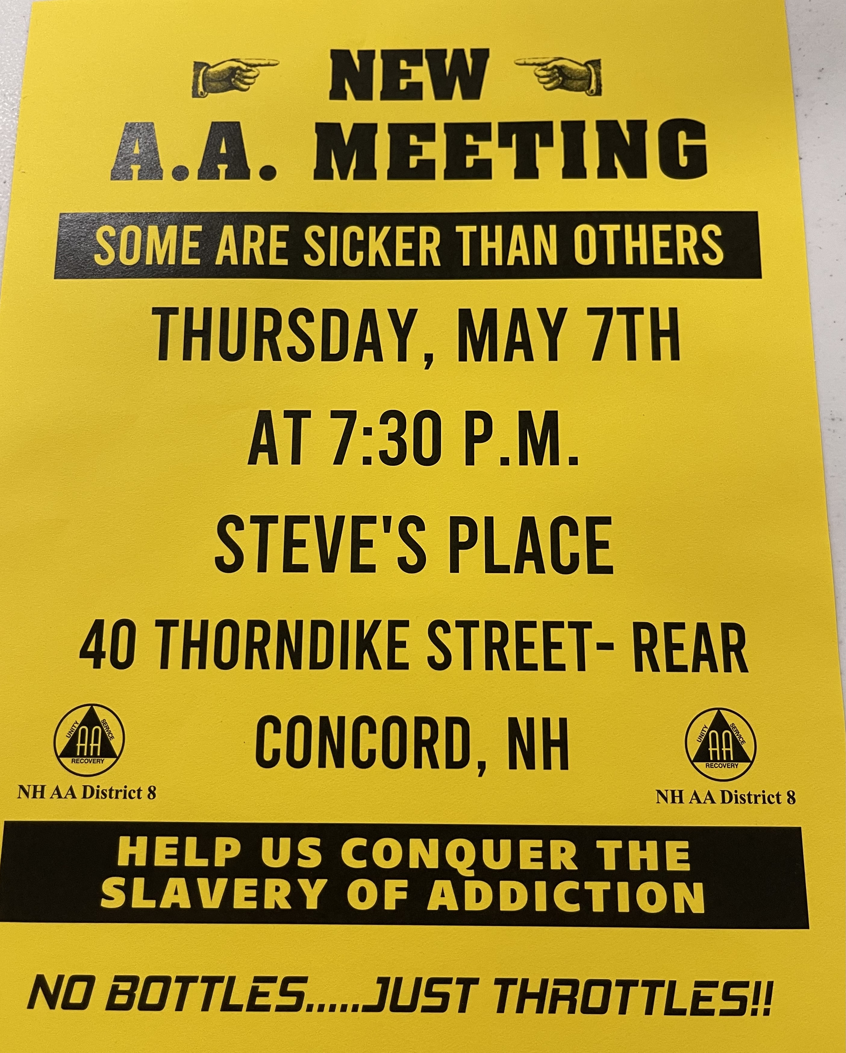 Upcoming central NH AA District 8 gatherings